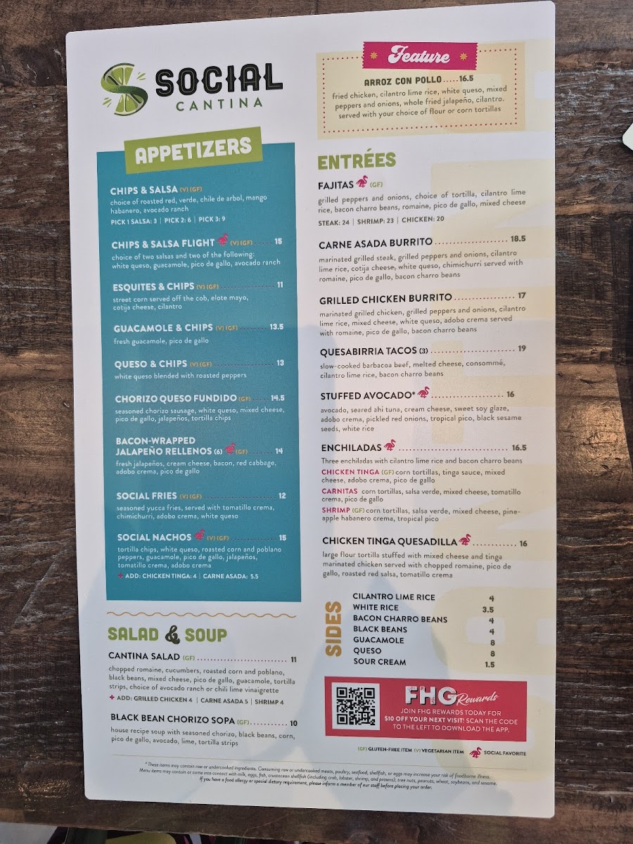 marinated grilled chicken, grilled peppers and onions, cilantro lime rice, mixed cheese, white queso, adobo crema served with romaine, pico de gallo and bacon charro beans