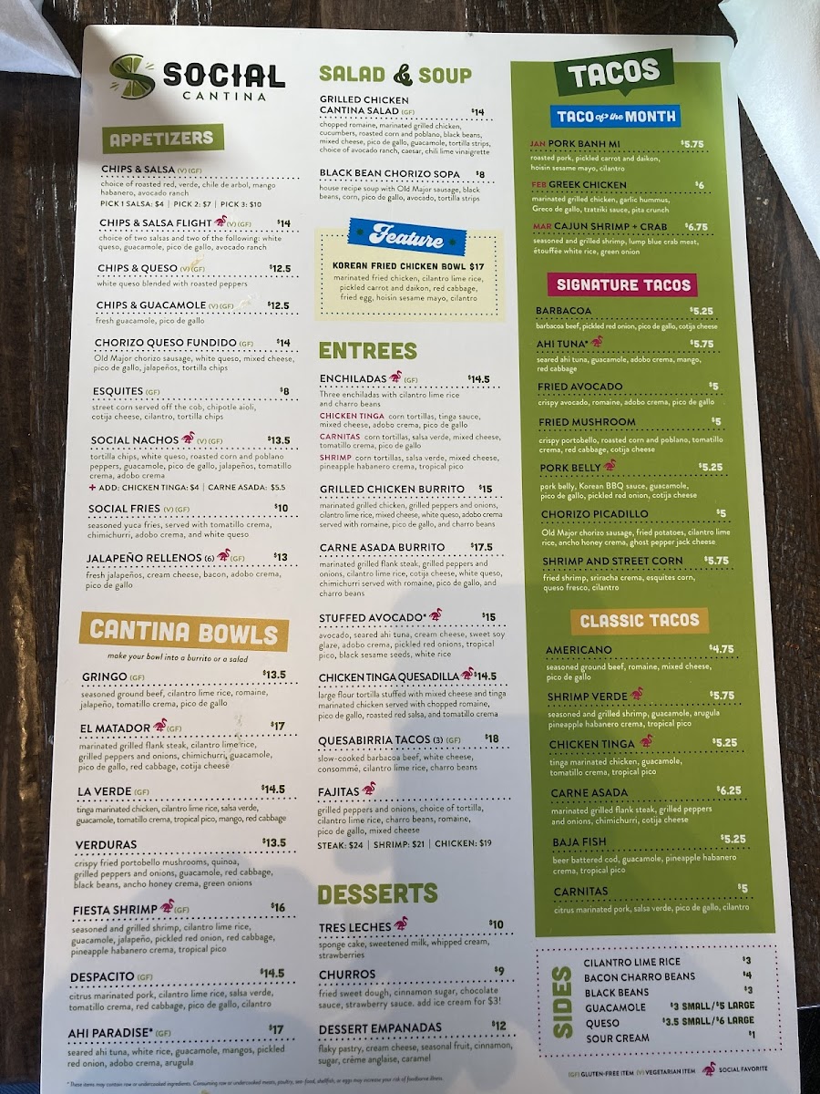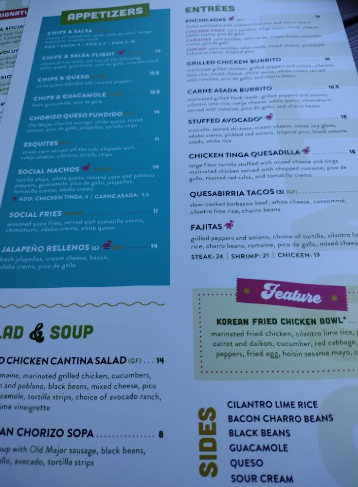 tortilla chips, white queso, roasted corn and poblano peppers, guacamole, pico de gallo, jalapenos, tomatillo crema, adobo crema